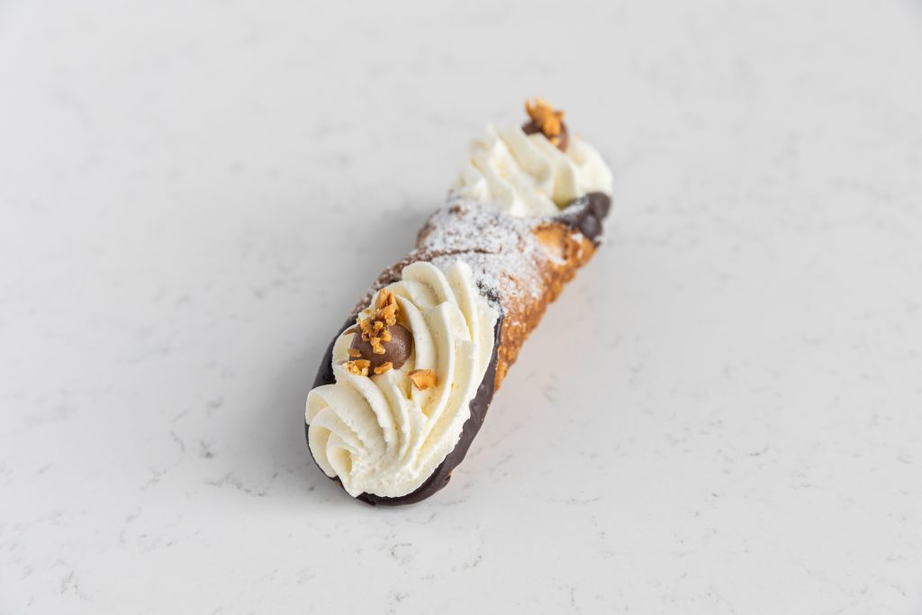 Dark chocolate cannoli shell + nutella cream + whipped cream + toasted hazelnuts